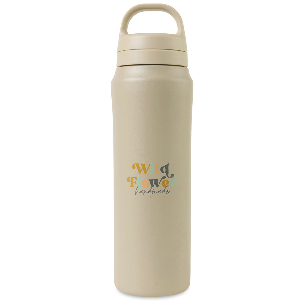Aviana Taupe Rowan Recycled Water Bottle - 16 Oz. with a custom logo creates a cute product option to share with friends, family, and customers. The smaller bottle is great for short hikes, school, or the office to help you stay hydrated throughout the day. The convenient top handle allows this to be clipped to a backpack or tote as needed.