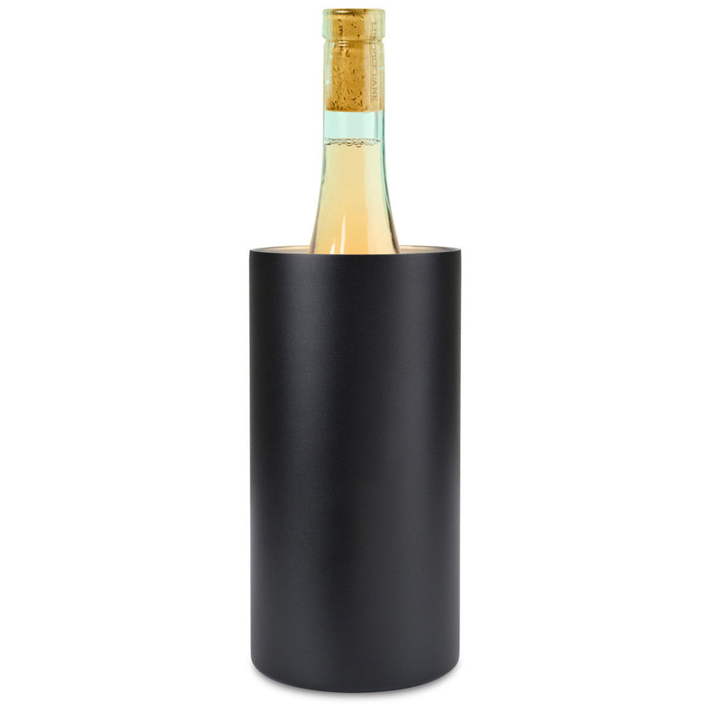 Choose a corporate logo for the Aviana Black Rowan Recycled Wine Chiller to stock your bar, hotel, AirBnB, or event venue. This recycled stainless steel wine chiller is sweatproof and ready for a night of fun and entertainment. Choose a custom date for a specific event and allow guests to take the chiller as a gift.The minimum order for this product is 25 pieces.