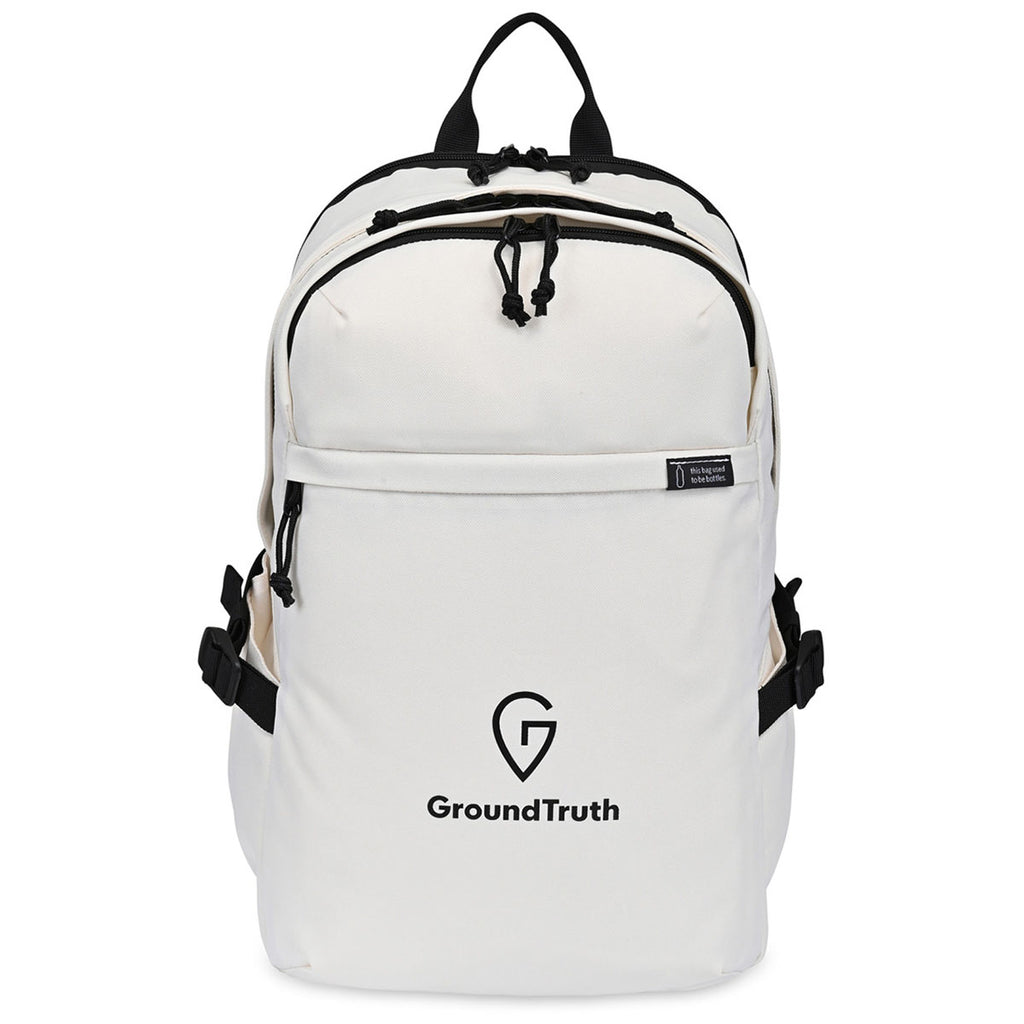 Enjoy a custom modern look with the Gemline Cream Renew rPET Computer Backpack that is both updated and sustainable in its look and style. Computers are a part of our daily lives and this backpack makes it easier to carry your electronics wherever you may need to be. The top dual zippered pocket keeps accessories together while the rear padded zippered compartment holds laptops up to 15 inches. Dual side water bottle holders, interior lock pockets, and padded adjustable shoulder straps make this a wonderful option for daily use. Place an order to make sure these are in stock for your next event.