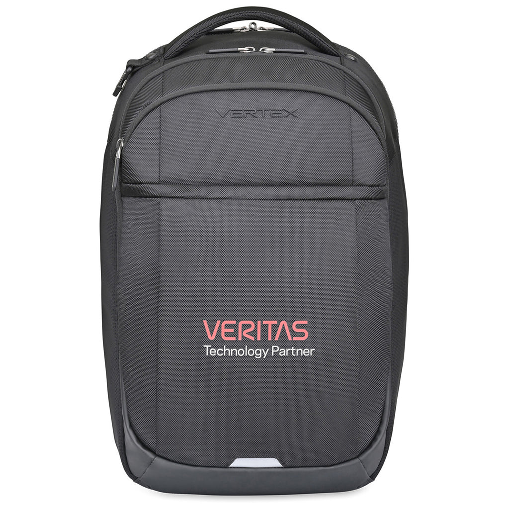 Add a corporate logo to the Vertex Black Brooklyn Laptop Backpack to create an easy-to-carry option for those who travel for work. This backpack holds up to a 16" laptop and 10" tablet with a multi-function organizer, key fob, and scratch-resistant pocket for phones. When needed, it unzips and lays flat for use.