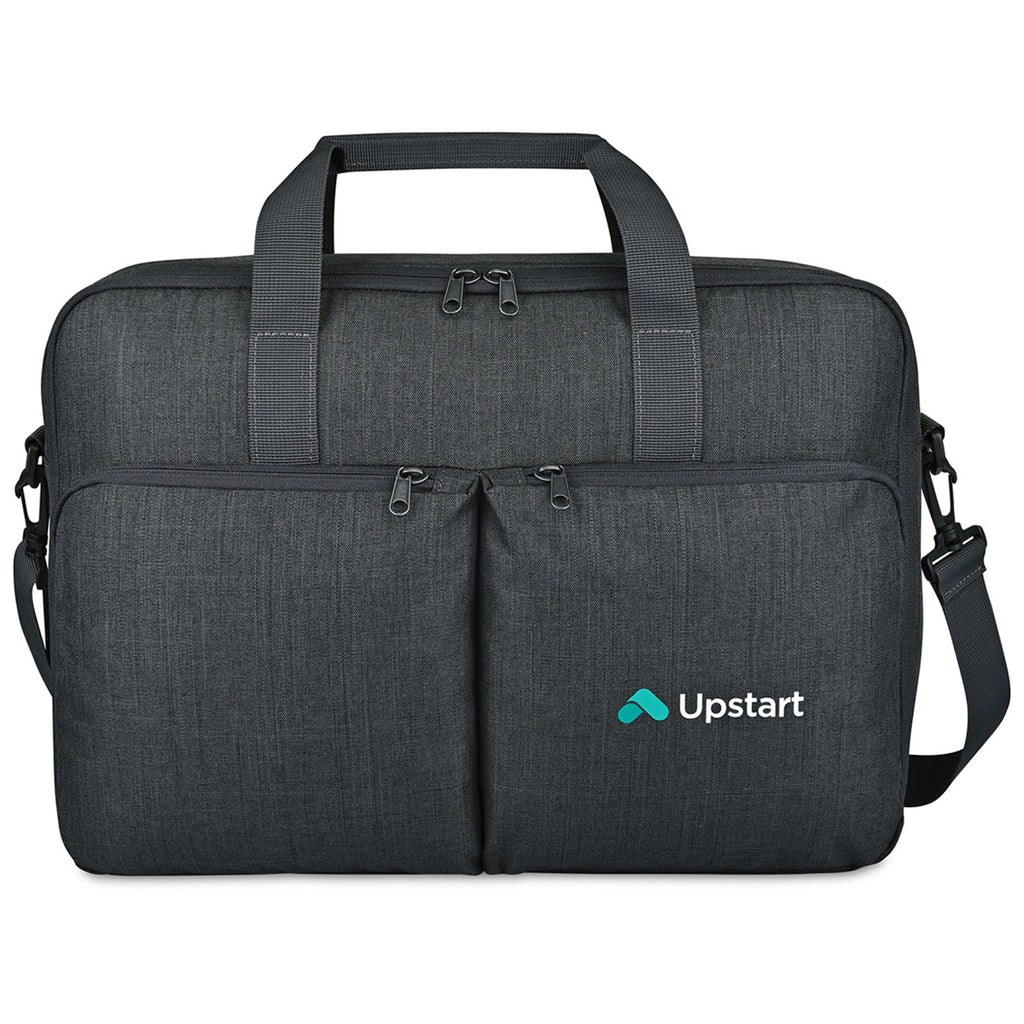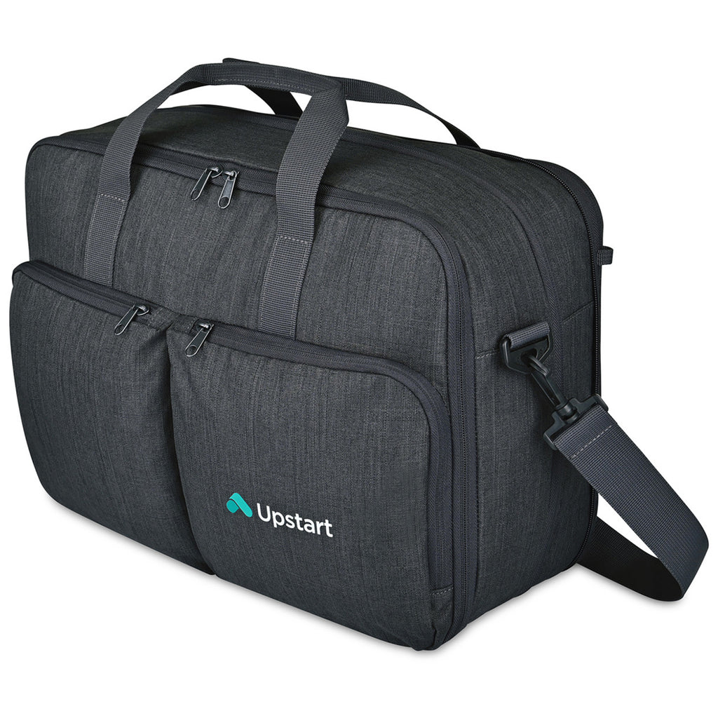 Add a corporate logo to the Gemline Black Sand Alba Weekender to help your staff stay organized in style. The zippered padded laptop pocket fits up to a 16" laptop and multiple compartments for organization to keep small and needed items at hand. The trolley strap adds convenience to this black sand weekender that is ready for your busy schedule.