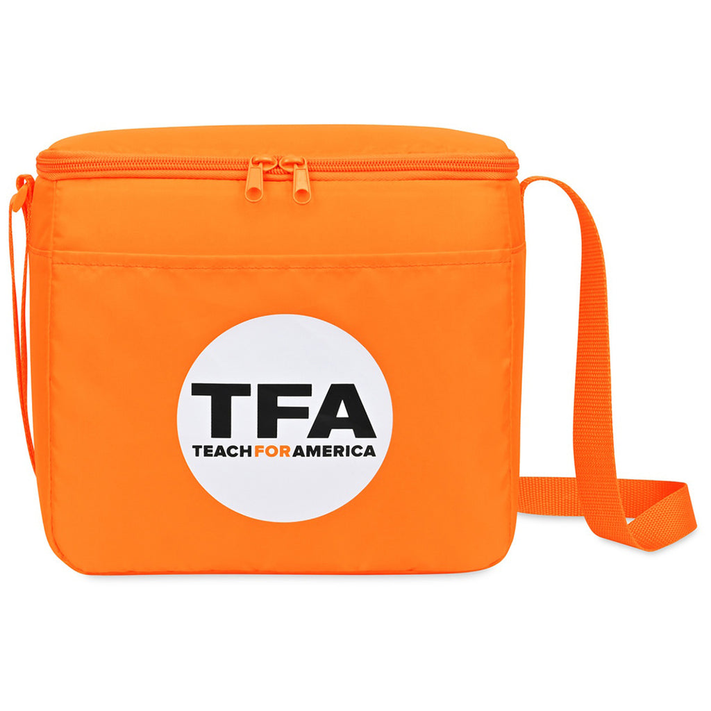 Gemline Orange Arlo rPET 9 Can Box Cooler with a corporate logo is a perfect promotional item that will be used on all types of adventures. Whether going to a sporting event, hiking, or to a picnic in the park, this box cooler has a zippered main opening and a front pocket for a few extra snacks or your phone and keys.The minimum order for this product is 50 pieces.