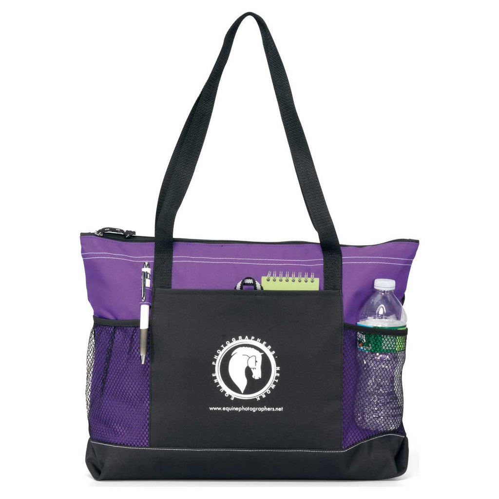 You have a lot to do, and not much time in which to do it. There are errands to run, people to see, and you have no idea how you're going to get everything you need from Point A to Point B in a hurry. Fortunately, there's an invention for just such a problem: the Gemline Purple Select Zippered Tote. Specifically, this Tote is perfect for handling those everyday tasks while keeping you mobile. Simply add everything you need to the tote, head out on the road, and you're ready to conquer the day. All that's left is adding your custom logo to this tote to make sure that people can rep your brand everywhere they go. The minimum order for this product is 100 pieces when decorated.Highlights