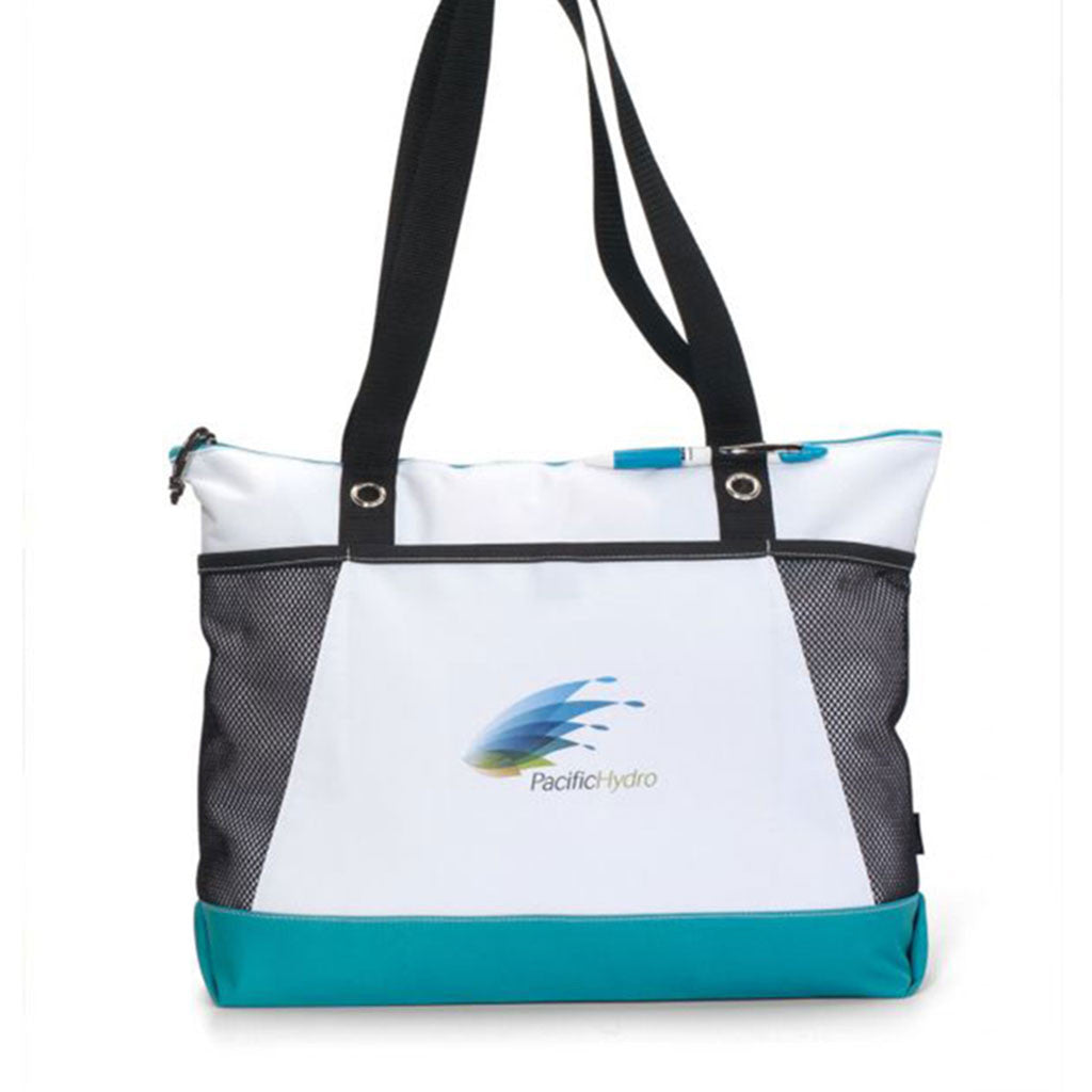 When you're at a convention, you're in "promotion mode." And that's a good thing, because here at Merchology, you can add your custom logo to convention totes like the Gemline Turquoise Venture Business Tote. That means maximum branding with maximum quality-and a sure way to attract people to your corporate swag. This particular tote has enough durability and strength to see use for years on end, which means you won't may not even see the long-lasting branding impact it has. The minimum order for this product is 100 pieces when decorated.
