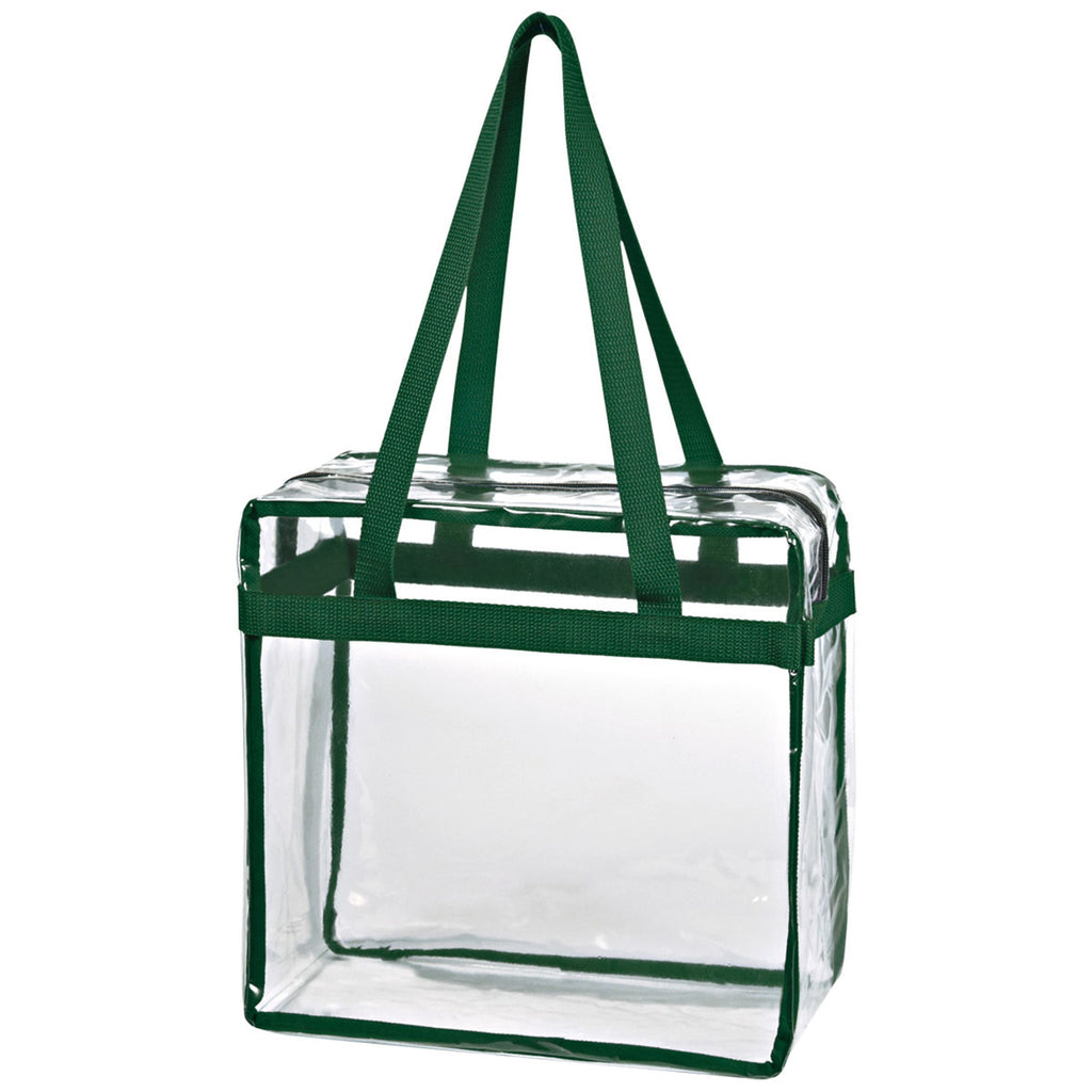 Hit Clear with Forest Green Trim Clear Tote Bag with Zipper