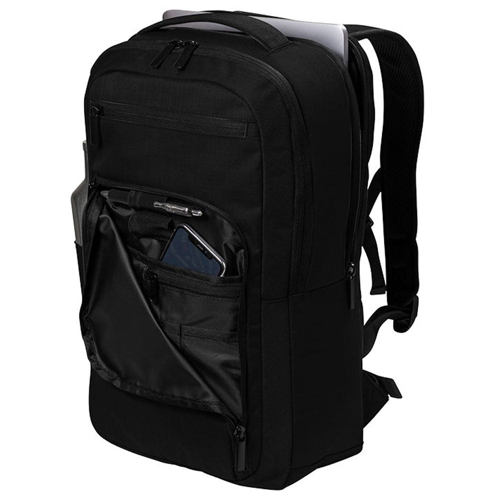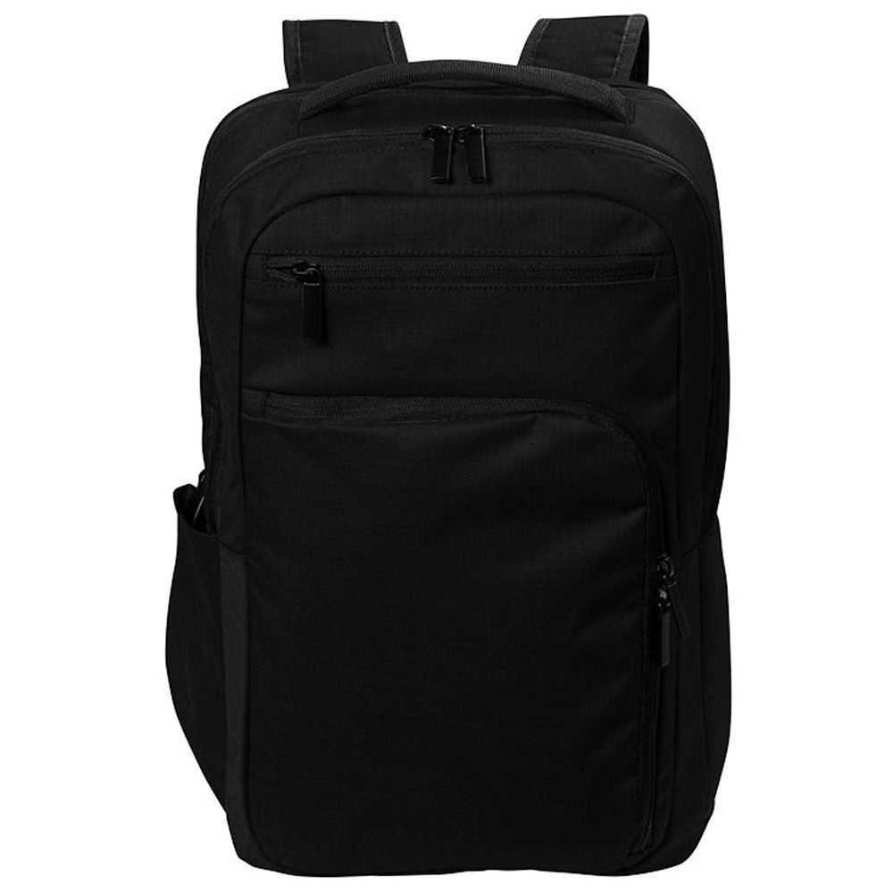 Sleek and sophisticated in design, the Port Authority Deep Black Impact Tech Backpack will ensure your company's custom logo gets noticed around campus or around the city. Contemporary twill polyester gives it a modern edge that young students and professionals will appreciate. It also comes complete with multiple interior pockets so staying organized is easy.Highlights