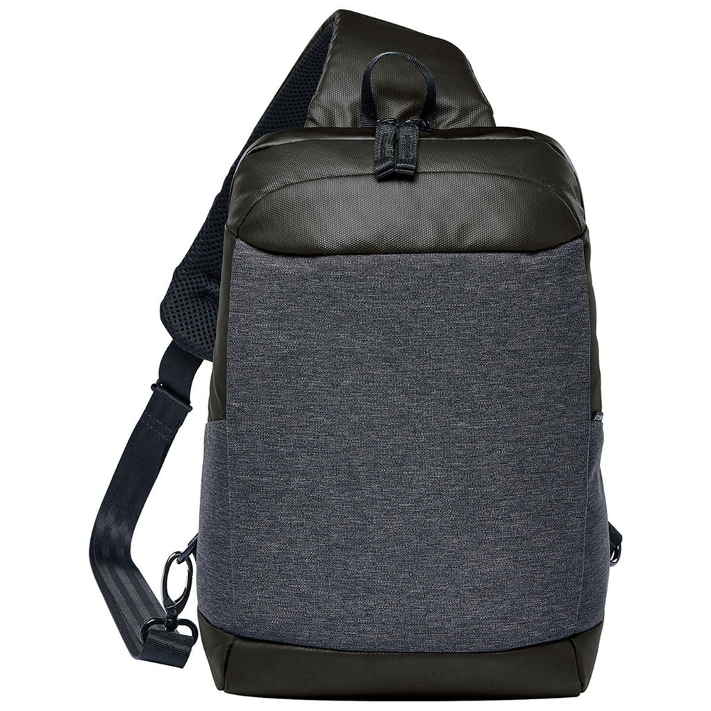 The stylish Stormtech Graphite/Black Quito Sling Backpack will show off your company's custom logo or design while also keeping your team incredibly organized. A singular strap gives it a unique look that is sure to turn heads in a crowd. Inside, you'll find space for all of your most important documents as well as multiple pockets for easy organization.