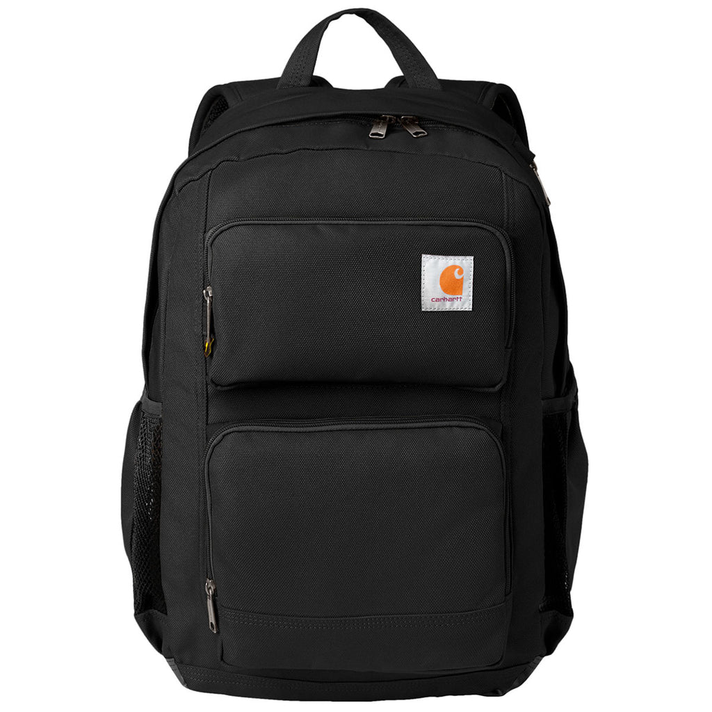 Carhartt Black 28L Foundry Series Dual-Compartment Backpack with a custom logo is great for work, school, and travel. The large main compartment has a dedicated tablet sleeve, while the front zippered portion helps with organization. An abrasion-resistant base and water-resistant coating means this backpack can go anywhere. Order today.This product can only ship within the United States and Canada.