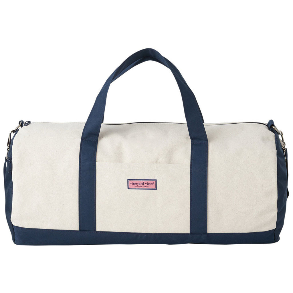Choose custom embroidery for the Vineyard Vines Natural Medium Duffle for an easy-to-carry bag that is ideal for weekend trips. The sturdy canvas body with an interior pocket, zippered top, and double canvas handles is easy to grab and go as you head to the gym, to work, or out of town. Place an order today.