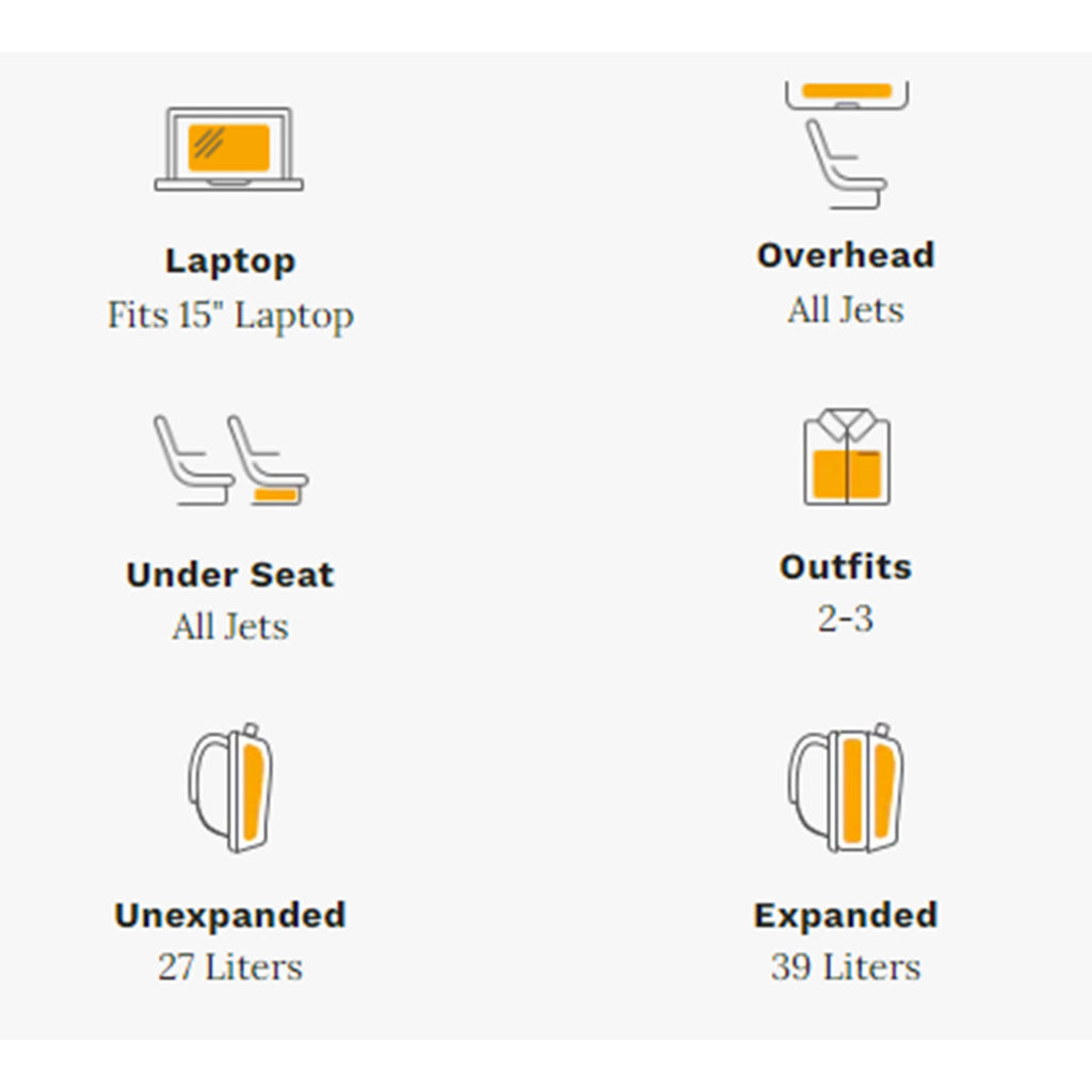 - Volume: Unexpanded - 27 Liters / Expanded: 39 Liters