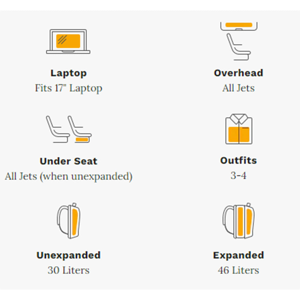 - Volume: Unexpanded - 30 Liters / Expanded: 46 Liters