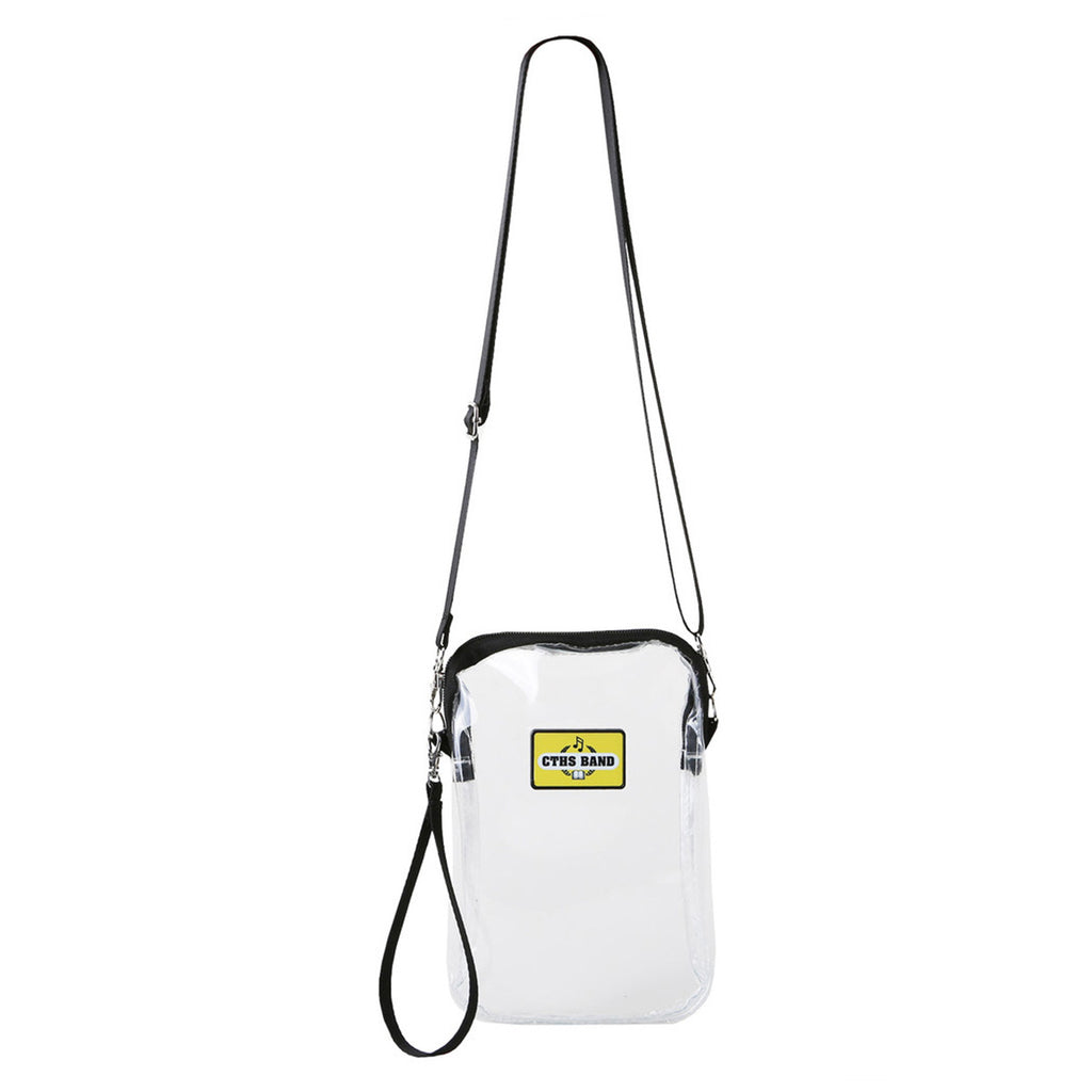 Best Promotions USA Clear/Black Mini Crossbody Clutch with a custom design is the stadium-approved essential that keeps you organized while having fun. The see-through clutch will hold your phone keys and a wallet, if needed, with a fashionable edge. Perfect for concerts, sporting events, and school. Place an order today.