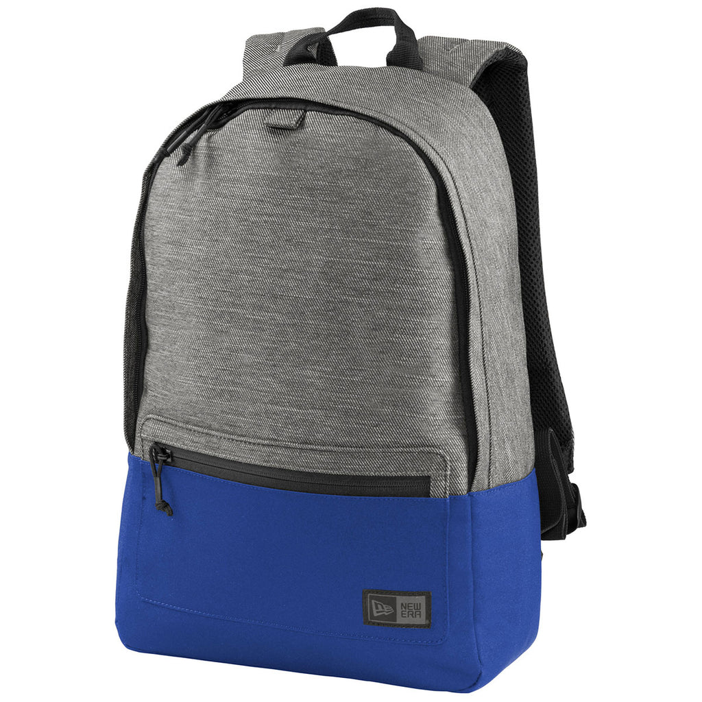 Heavy protective foam on the back of the custom logoed New Era Grey Twill Heather/Royal Legacy Backpack not only protects electronic devices, it also supports your back to ensure pain free business trips. The padded laptop sleeve absorbs the constant pounding delivered by bumpy flights. Rugged polyester resist rips and tears to give your team go to luggage that lasts for years to come. Add your company logo on the large imprint area to send a marketing message potential customers will remember. An extensive office organizer comes with angled pockets that allows you to access your cell phone quickly.