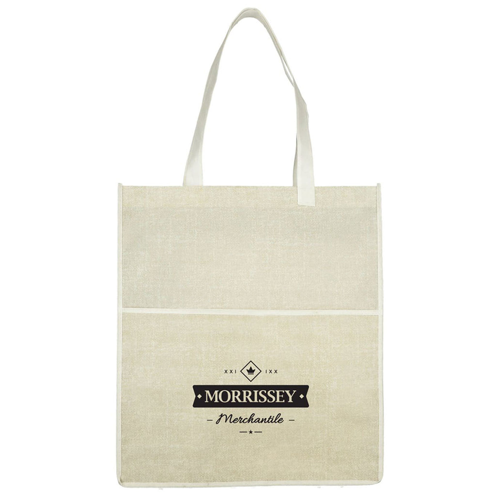 Your team will be able to keep their most important documents close by when they have a Bullet Natural Apollo Recycled Non-Woven Convention Tote that features your company's custom logo or design. This sophisticated accessory is made from recycled material and comes with an exterior pocket for storing smaller items.