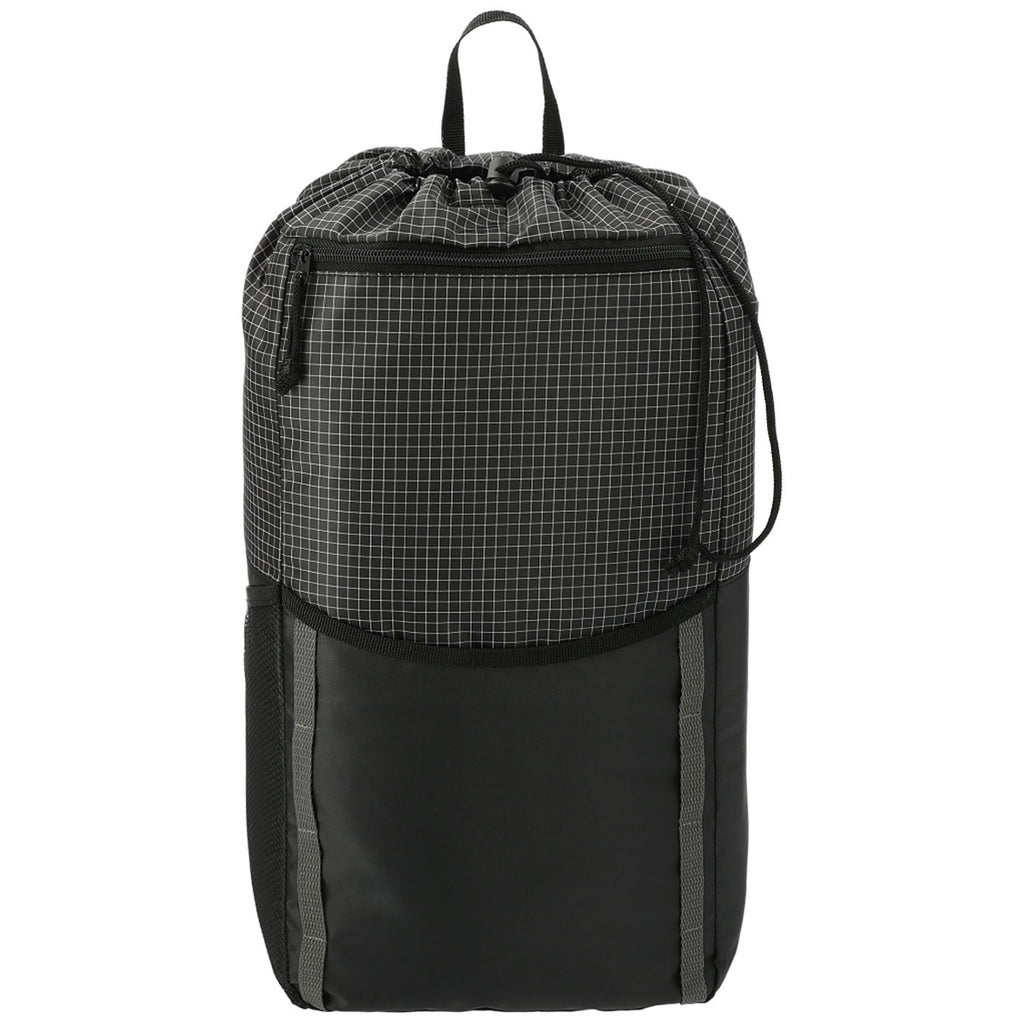 The Bullet Black Grid 14L Drawstring Backpack is an easy way to ensure your team members are always prepared at retreats, work conferences, and more. The contemporary exterior will highlight your company's custom logo or design, while features like the front slash pocket, water bottle pocket, and secure drawstring closure make it a must-have.The minimum order for this item is 100 pieces.