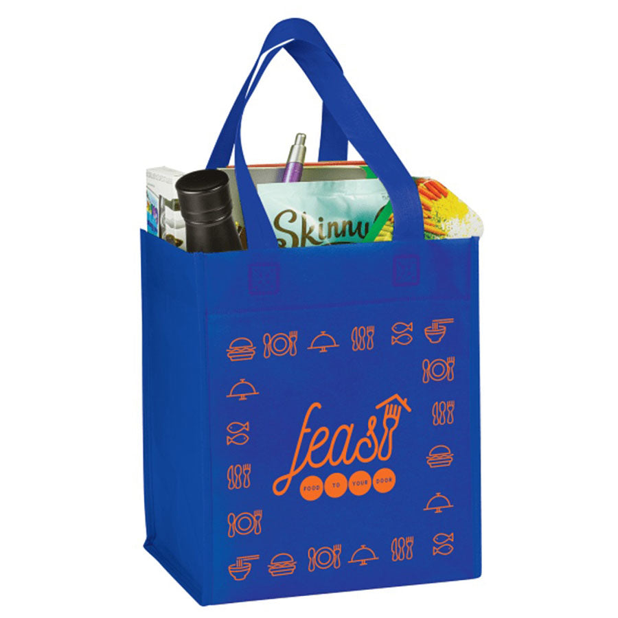 Simplify your shopping with the Basic Grocery Tote in classic Bullet Royal. Made from durable 80g non-woven polypropylene, this tote is perfect for carrying groceries, everyday essentials, or promotional items. Its large open main compartment offers ample space, while the 8.5" drop handles ensure comfortable carrying.