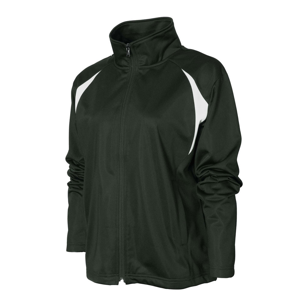 Women appreciate a striking jacket that is chic and colorful. When you have your custom logo on the BAW Women's Dark Green/White Colorblock Tricot Jacket it will certainly draw attention. This colorblock jacket made from brushed tricot. You have accent trim on the upper chest near the sleeves and also across the back yoke. This is a moisture management fabric with a full front zipper so you can protect your neck area. The jacket has slash pockets, and an open bottom with drawstring and cord lock. Available sizes are S to 3X.Corresponding Men's Style: BAW Men's Dark Green/White Colorblock Tricot Jacket