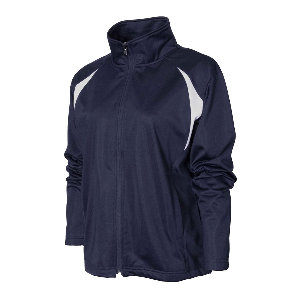 Women appreciate a striking jacket that is chic and colorful. When you have your custom logo on the BAW Women's Navy/White Colorblock Tricot Jacket it will certainly draw attention. This colorblock jacket made from brushed tricot. You have accent trim on the upper chest near the sleeves and also across the back yoke. This is a moisture management fabric with a full front zipper so you can protect your neck area. The jacket has slash pockets, and an open bottom with drawstring and cord lock. Available sizes are S to 3X.Corresponding Men's Style: BAW Men's Navy/White Colorblock Tricot Jacket