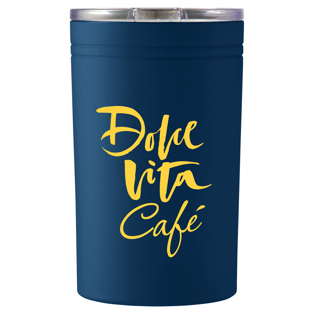 The vacuum insulated Bullet Navy Blue Sherpa 11oz. Vacuum Tumbler & Insulator keeps drinks cold or hot throughout the day. Your custom logo printed on its body will stay intact no matter what goes inside the tumbler. Add this tumbler to your list of giveaway items for your employees during special events or hand them out as a promotional tool at recruiting events.