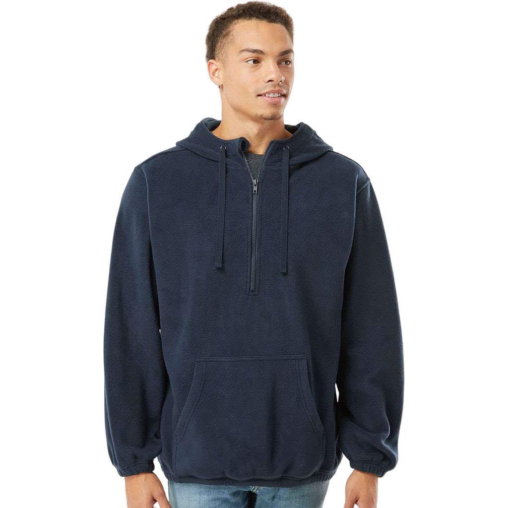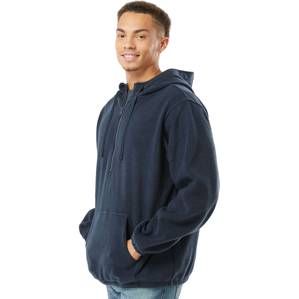 Burnside Men's Navy Polar Fleece Quarter-Zip Hooded Pullover