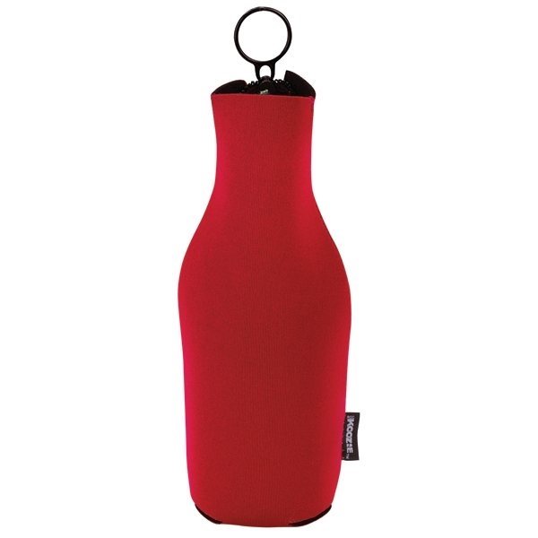 Keep drinks cool while promoting your company with this Koozie Red Neoprene Zip-Up Bottle Kooler ideal for tailgating parties, corporate picnics, and more. Add an imprint of your company name, logo and start building brand awareness with this bottle cooler designed to fit most 12oz. longneck bottles. Folds flat for easy storage when not in use.