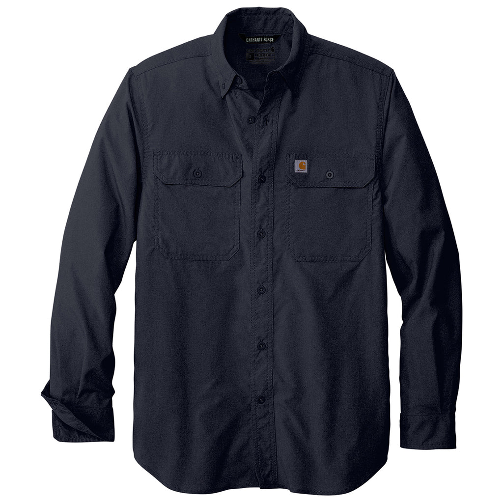 The custom Carhartt Men's Navy Force Solid Long Sleeve Shirt is the ideal promotional product and employee gift item. Add your brand logo to the shirt and you have the best way to advertise your brand quickly and easily.