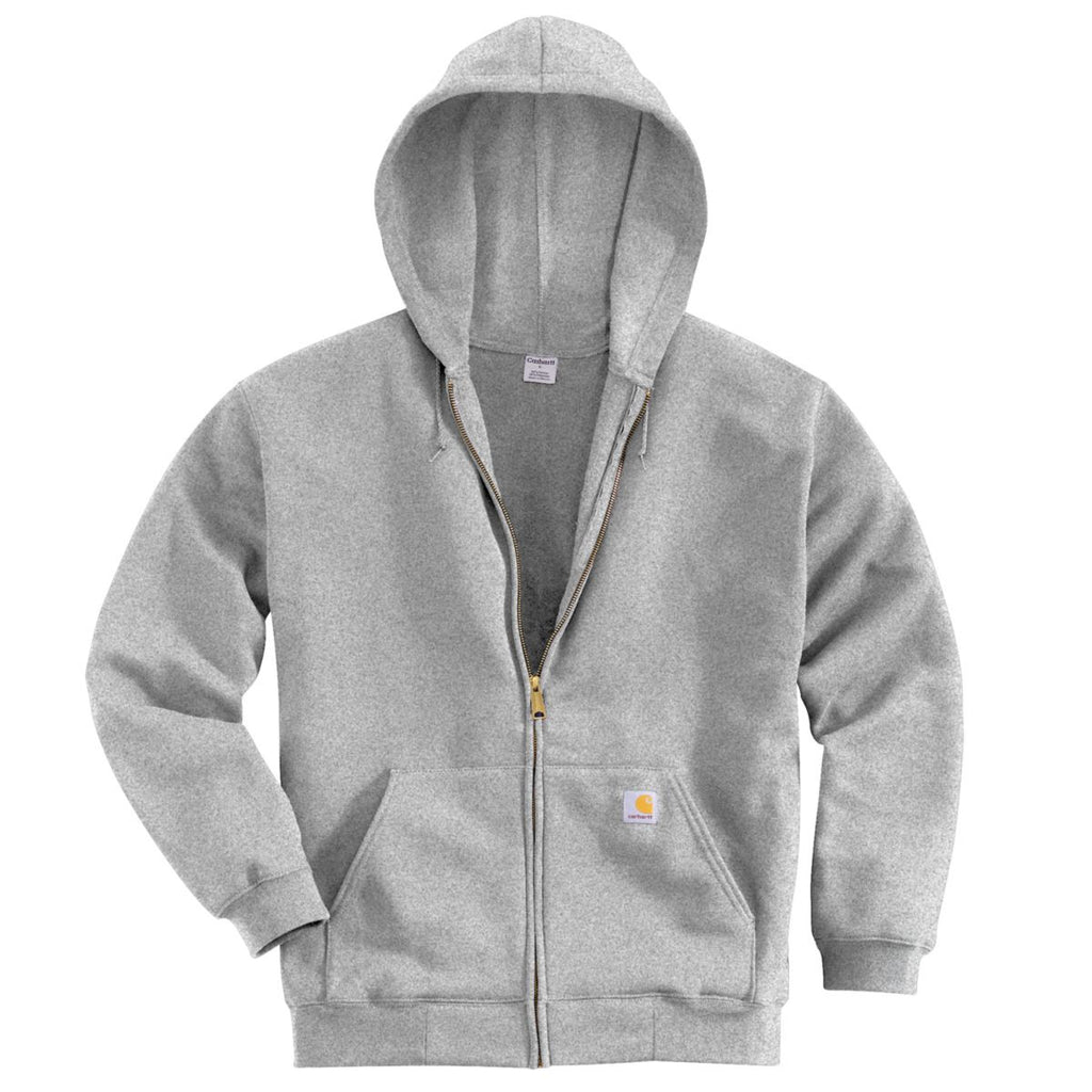 Easy to wear, easy to put on, easy to take off yep, this Carhartt Men's Heather Gray Midweight Hooded Zip Front Sweatshirt hits all of the checks on your essential sweatshirt checklist. It's a simple piece to add to your wardrobe, to be sure, but that also means it's versatile, including a brass front zipper, a three-piece hood with a draw-cord closure, and cotton-polyester fabric blend that insulates when it's cold without adding a lot of weight when it's not. Your corporate logo or custom embroidery can be added to the front of this piece to take it from simple to unique in one step.
