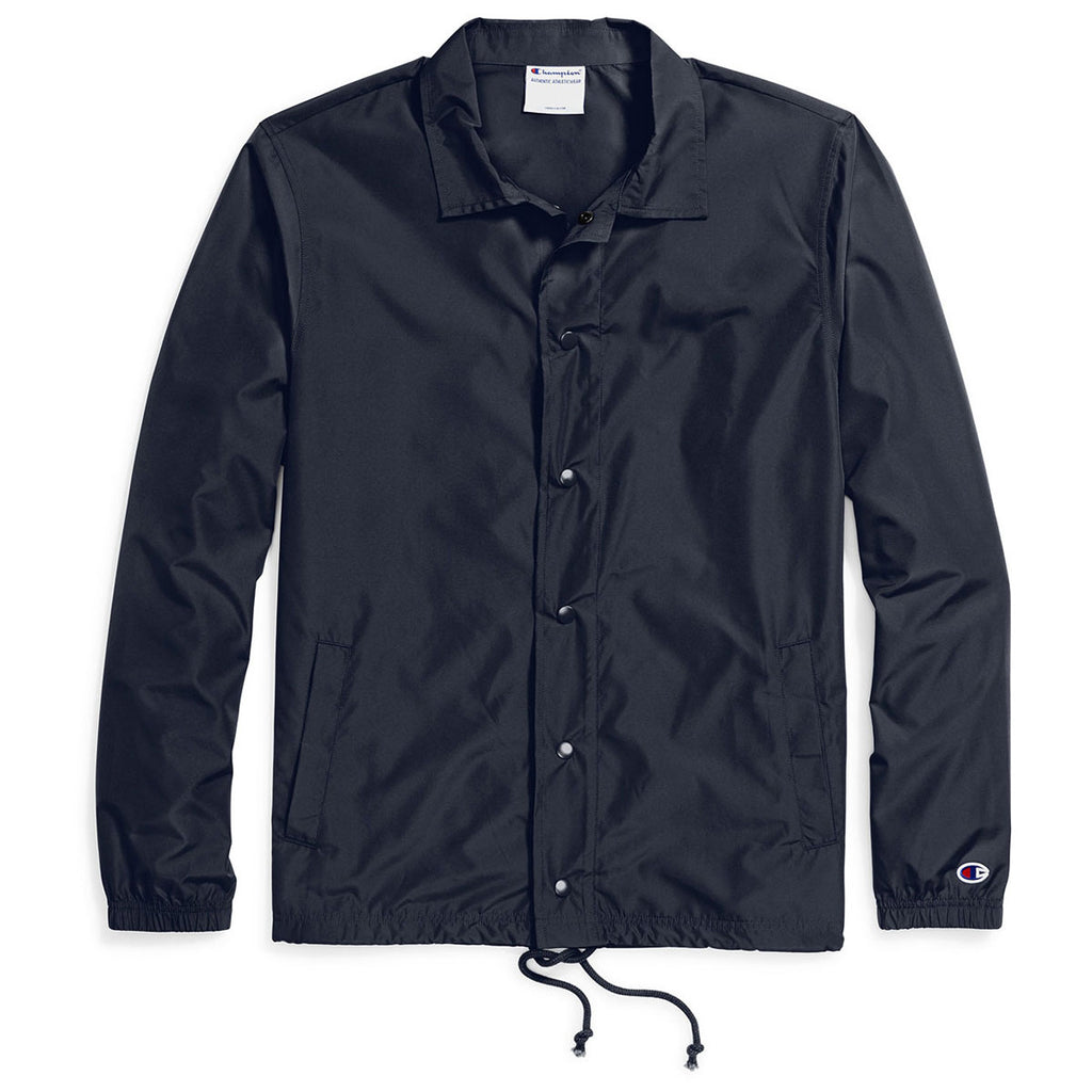 Outfit your team to perfection in the stylish, sporty Champion Men's Navy Coach's Jacket. Your company or team's custom logo will make a statement at any outdoor event when it's added to this contemporary design, which features desirable details like an adjustable drawcord at the hemline.