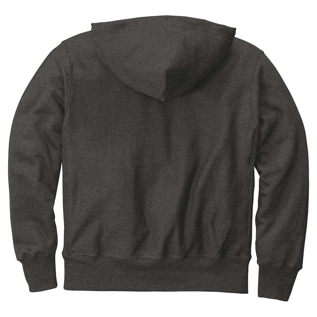 A comfy sweatshirt is a must have. Create a custom look with the Champion Men's Charcoal Heather Reverse Weave Hooded Sweatshirt. Made in the traditional form of hooded sweatshirts, this cotton rich poly blend is warm, comfortable, and perfect for layering. Add a heat transfer of your choosing to the reverse weave that resists shrinkage to show off company affiliation or to stand out at team events. The front pouch pocket is great for storing your phone and keys or keeping your hands warn as you hang out around the campfire or head to the gym to work out.