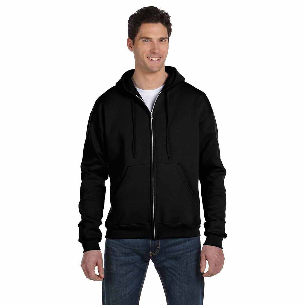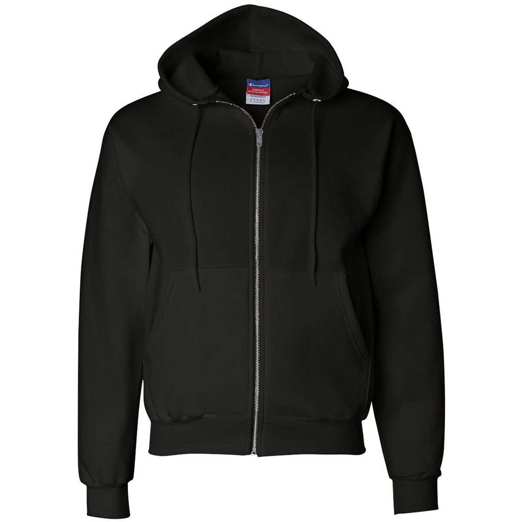 For when you need to layer up with something more casual the Champion Men's Black Eco 9-Ounce Full Zip Hood will keep you warm. It's highly durable cover stitching throughout prevents common snags caused by daily wear. The 50% cotton and 50% polyester outer garment comes with a two-ply hood that generates warmth. Champion designed this embroidery-friendly apparel to help companies promote their brands in the community. All you have to do is attach a custom logo to complement the iconic Champion "C" on the left cuff.