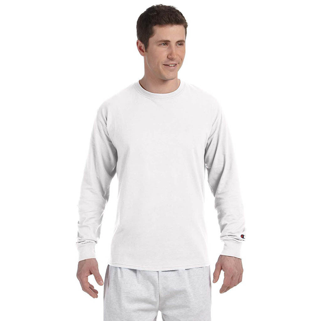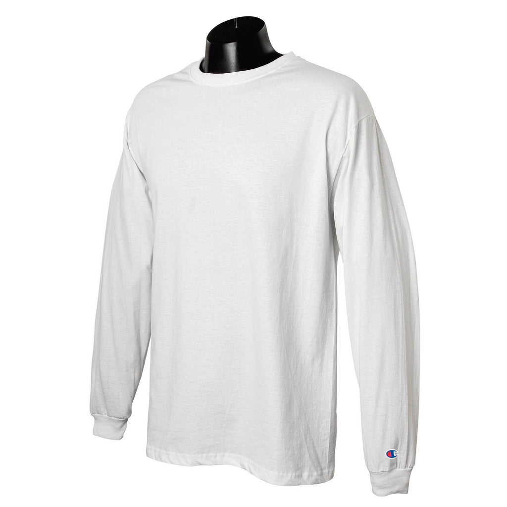 There's a reason they call it Champion and it's not just the brand name. Champion has been a trusted name in sportswear thanks to classic style, quality craftsmanship, and plain being one of the best around. Featured here is the Champion Men's 5.2 oz White L/S Tagless T-Shirt. This is a timeless design that will never go out of style. The Champion Men's 5.2 oz White L/S Tagless T-Shirt is great for not just playing sports, but it's wonderful for everyday wear as well. Extremely comfortable, the tagless aspect allows for no neck irritation. It is made of 100% open-end cotton, has ribbed cuffs, a rubbed collar and there is a logo above the left cuff.