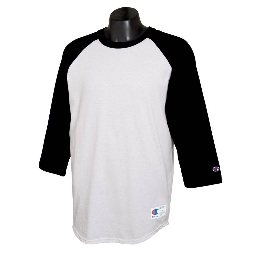 Want a T-shirt that will never go out of style? The classic design of the Champion Men's White/Black Baseball T-Shirt is comfortable and durable enough to wear all the time--and casual enough that you just might get away with doing exactly that. The Champion Men's White/Black Baseball T-Shirt is extremely lightweight and breathable. Made with 100% cotton, it has 3/4 length sleeves, double-needle stitching on the sleeves and bottom hem, and a logo on the left sleeve.