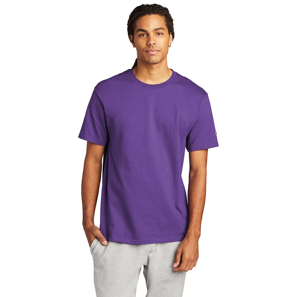 Add a custom logo to the Champion Men's Purple Heritage 6-oz Jersey Tee for a unique look all your own. Tee shirts are a great option for many occasions from a day at home to a team event. Add a corporate heat transfer to use these as company uniforms for those who work their hardest each day. Made of 100% cotton with a blend in some color options, the double needle sleeves and hem will stand up to a long day or work, play, or relaxing. A tag free label means comfort, hassle-free as you go about your day. Place an order today to have these for whatever your needs may be.