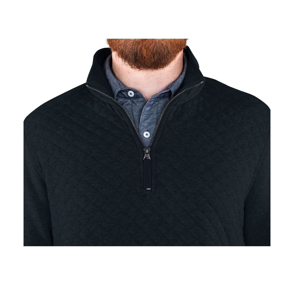 Charles River Men's Black Franconia Quilted Pullover with your custom logo design creates an easy to wear look that is highly versatile. The simple pullover with quarter-zip front has a sweatshirt design with diamond quilting. Great for outdoor fun, a morning jog, as part of a uniform, or simple daily wear.