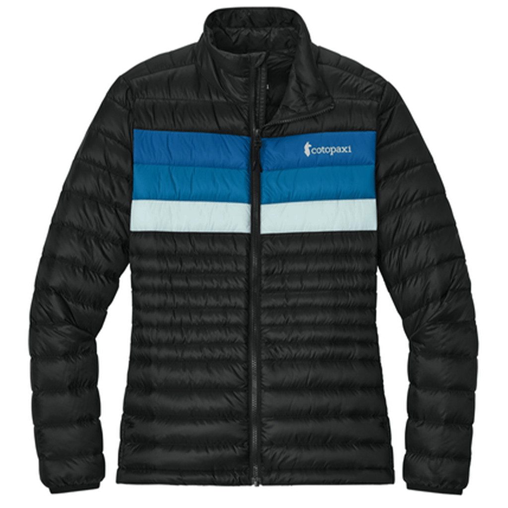 The custom Cotopaxi Women's Black/Atlantic Fuego Down Jacket delivers lightweight warmth with a flattering fit for hiking, travel, or urban wear. Crafted from durable, water-resistant fabric that is ethically sourced down, it ensures comfort and protection. Perfect for custom gifting with style, this jacket combines sustainable performance, modern style, and versatile wearability for year-round use.This product can only ship within the United States and Canada.