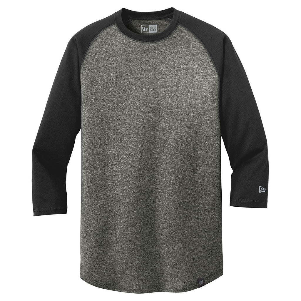 For a major league look, put on the rugged New Era Men's BlackBlackTwistist Heritage Blend 3/4 Sleeve Baseball Raglan Tee. When you slide safe into second base, the 40% polyester fabric resists rips and tears to give you several league seasons of high performance use. Back and shoulder yoke color blocking delivers a visually attractive appearance. Raglan sleeves and a shoulder darting shape help increase mobility for both arms. The extra mobility comes in handy when you need to let it rip at the plate. Add a custom logo on the large imprint area for expanding your company's presence at civic and professional networking events.