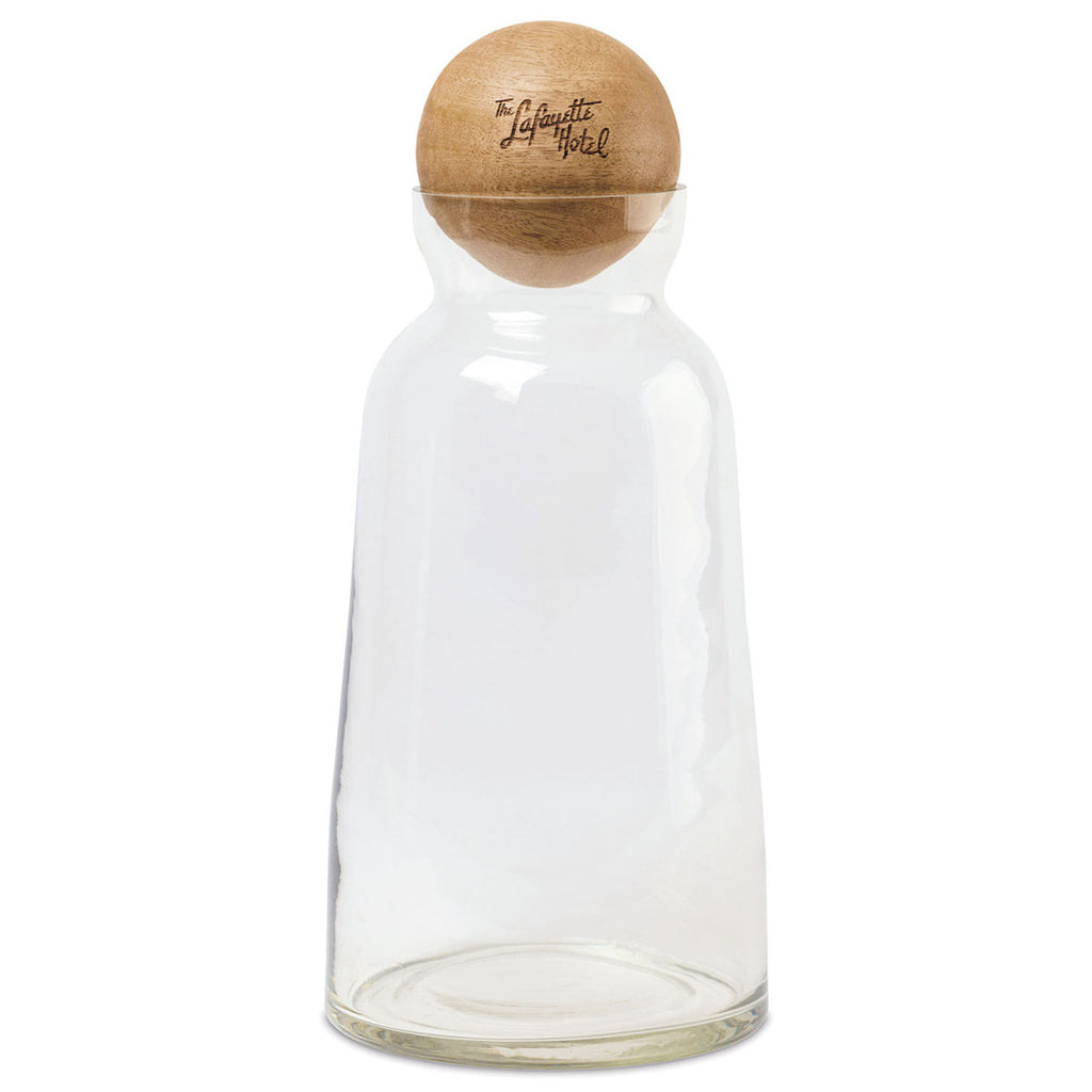 A sleek, minimalist design means that the Be Home Clear Brisbane Decanter will ensure your company's custom logo always makes a subtle statement. This delicate glass container is an eye-catching display piece that will elevate any bar, table, or office space. Adding your branding to the mango wood ball lid provides the perfect finishing touch.