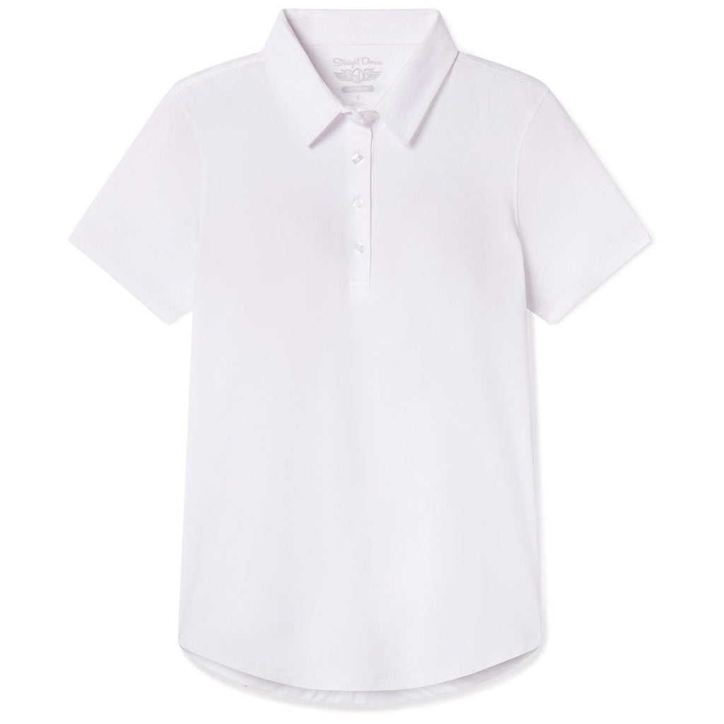 Add a modern staple to your custom women's wear collection with the Straight Down Women's White Abbot 2.0 Polo. Moisture-wicking fabric and stretch construction ensure lasting comfort, while tailored seams offer a flattering silhouette. Stylish and practical, this polo transitions easily from the office to weekend rounds.