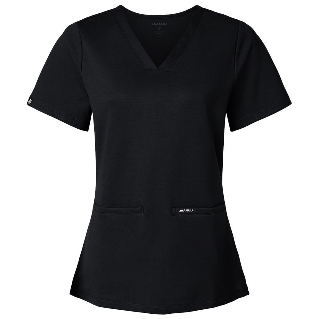 Jaanuu Women's Black Cesi Ultrasoft Scrub V-Neck Top