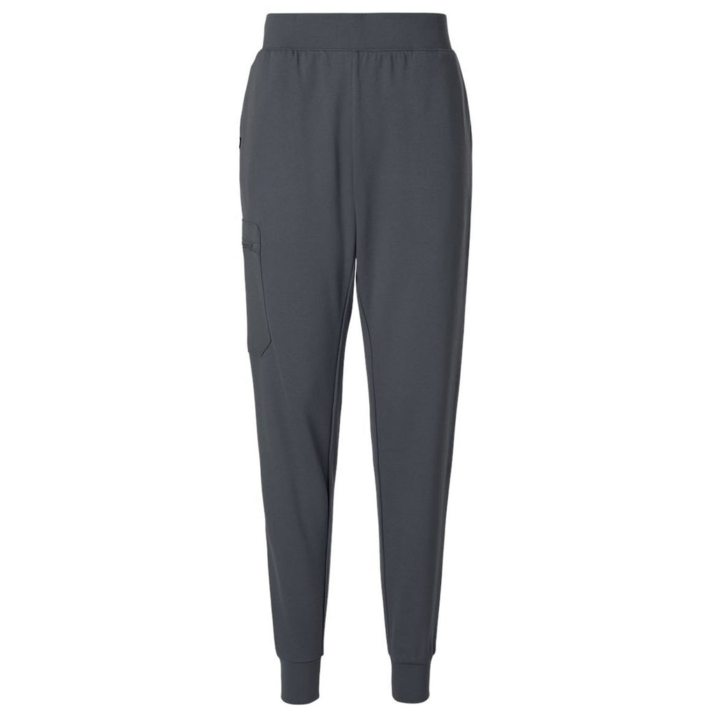 Jaanuu Women's Carbon Grey Rubi Ultrasoft Scrub Joggers with custom embroidery make a great gift or corporate uniform for those in the healthcare or health and wellness industries. These slim fitting joggers have four-way stretch, moisture management properties, and several pockets for convenience as you go about your day.Highlights