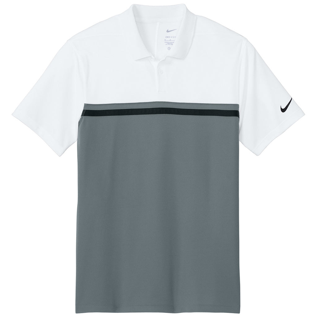 Show off your style with a custom Nike Men's White/ Cool Grey/ Black Dri-FIT Victory Colorblock Polo. This sustainable polo offers Dri-FIT moisture technology and the details that matter, like an anti-curl collar and rolled forward shoulders. Ideal for afternoon meetings at the clubhouse after a round of golf. Place an order right away.This product cannot ship outside of the United States.