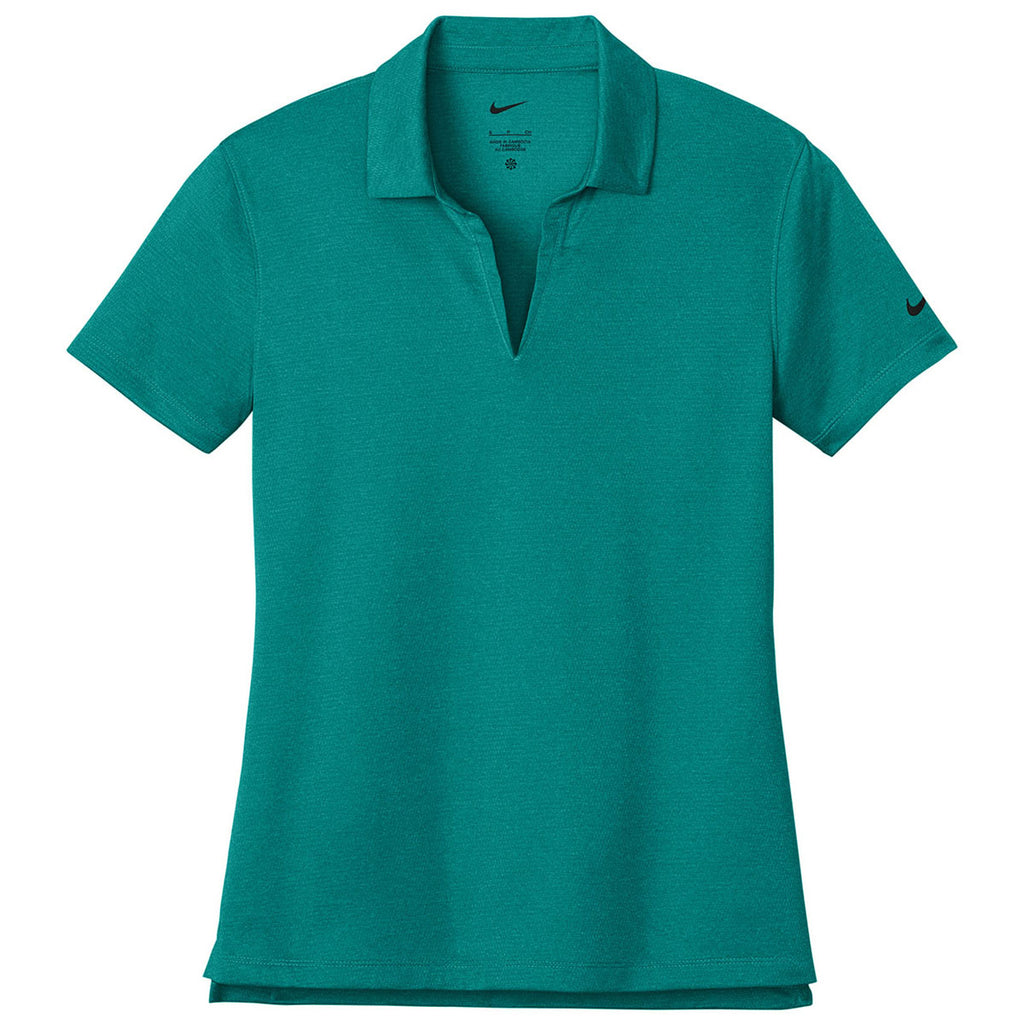 Enjoy a custom logo on the Nike Women's Bright Spruce Heather Dri-FIT Smooth Heather Polo, which offers a polished look with performance benefits. Designed with moisture-wicking Dri-FIT fabric, this polo keeps you cool and dry throughout your day. Its soft, heathered texture adds a touch of style, making it perfect for active days or professional settings that require both comfort and sophistication.This product cannot ship outside of the United States.