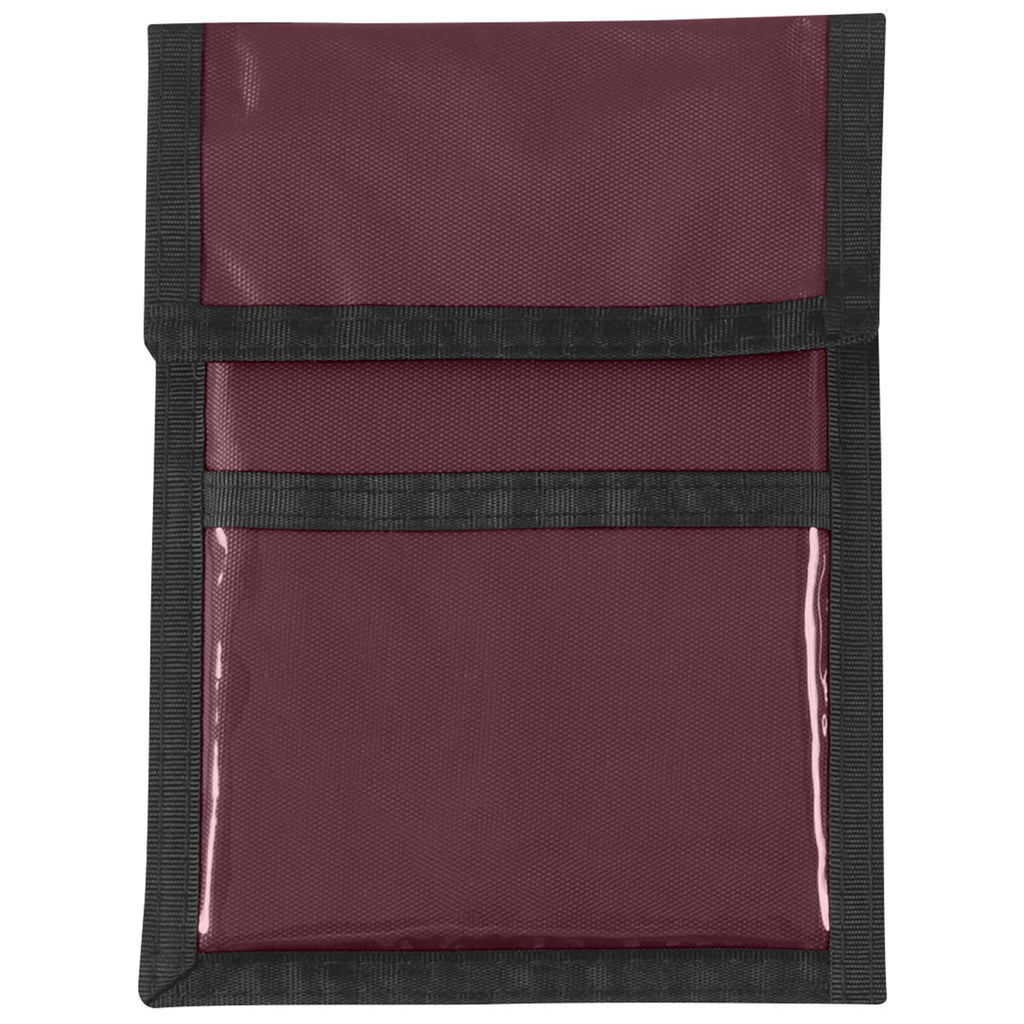 Design a corporate logo for the Hit Burgundy Nylon Neck Wallet Badge Holder to keep your ID and other small items safe and secure. These easy-to-wear holders are ideal for conferences or special organizational events when carrying a wallet or purse is inconvenient. Place your badge in the see-thru pouch and your cards or money in the other sections.