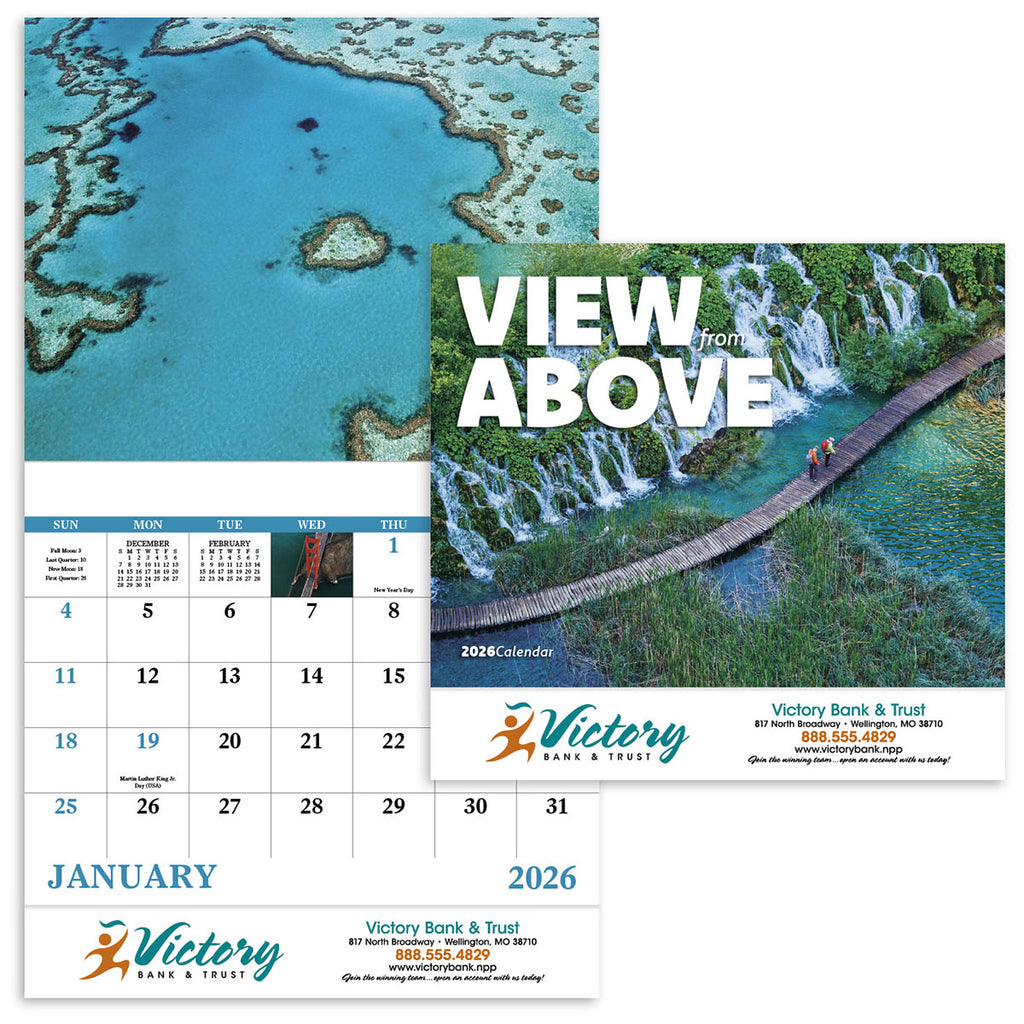 Choose a corporate design for the Good Value Custom View from Above - Stapled booklet that showcases breathtaking aerial photography of landscapes from around the world. This product is perfect for travel, tourism, or real estate businesses, offering clients a captivating visual experience. Its compact design makes it an effective marketing tool for direct mail campaigns or events.