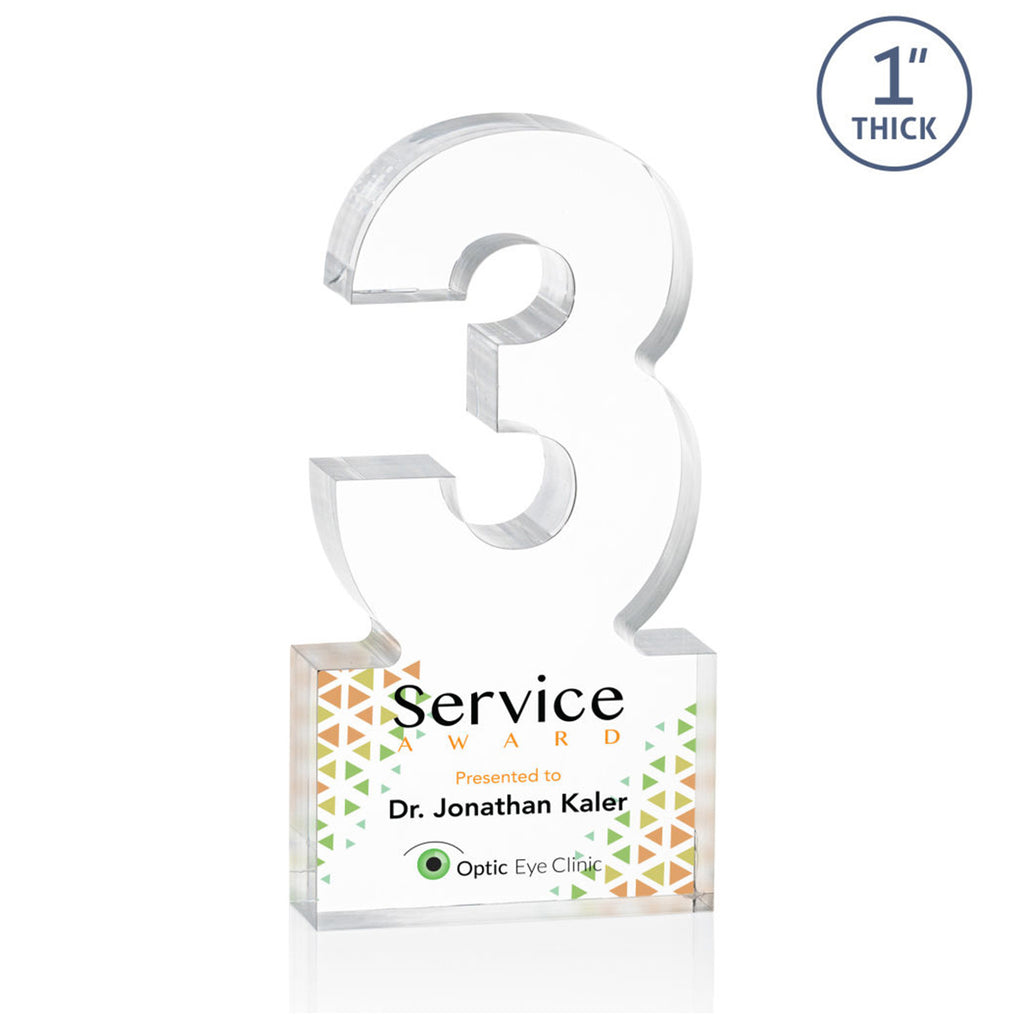 Corresponding Laser Engraved Style St. Regis Clear Astoria Award Number 3 - Laser Engraved
