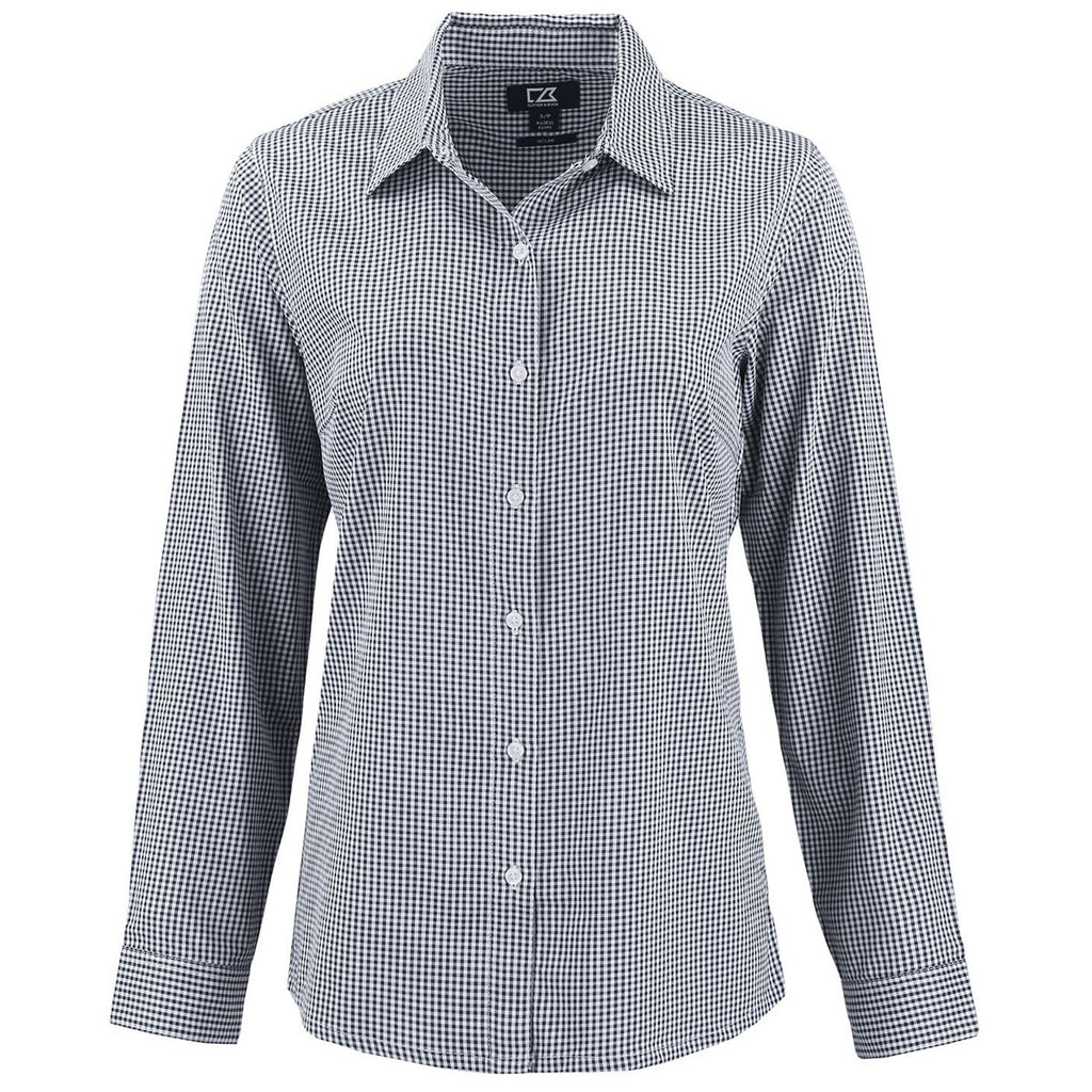 Cutter & Buck Women's Black/White Skyline Epic Confidence Recycled Gingham Long Sleeve Dress Shirt