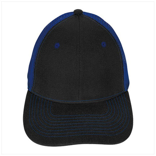 Koozie Black/Royal Mid-Profile Accent Mesh Snapback CapThe minimum order for this product is 48 pieces.