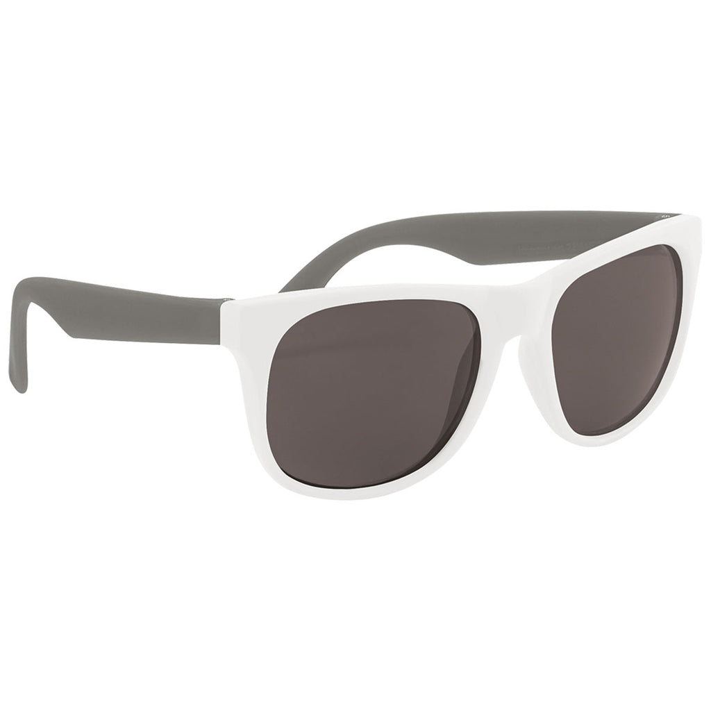 Add your custom name or design to the Hit White/Grey Rubberized Sunglasses to keep people protected and your brand prominent. The multiple colorful options will be a Hit for vacation, travel, and general use. Great for seasonal shops, vacation rentals, gifts, or prizes for special events. The rubberized glasses are tough for long term wear.