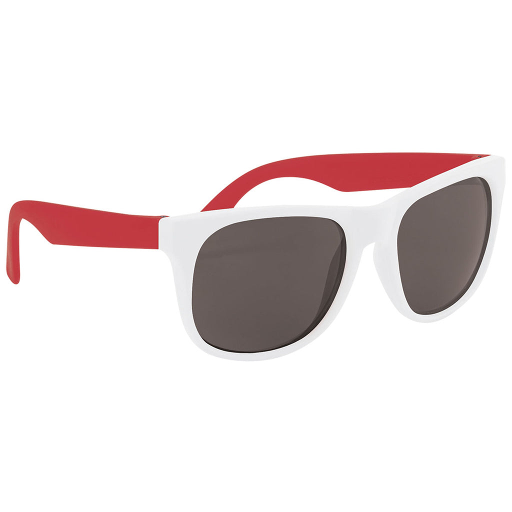 Add your custom name or design to the Hit White/Red Rubberized Sunglasses to keep people protected and your brand prominent. The multiple colorful options will be a Hit for vacation, travel, and general use. Great for seasonal shops, vacation rentals, gifts, or prizes for special events. The rubberized glasses are tough for long term wear.