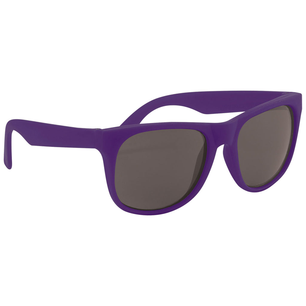 Add your custom name or design to the Hit Purple/Purple Rubberized Sunglasses to keep people protected and your brand prominent. The multiple colorful options will be a Hit for vacation, travel, and general use. Great for seasonal shops, vacation rentals, gifts, or prizes for special events. The rubberized glasses are tough for long term wear.
